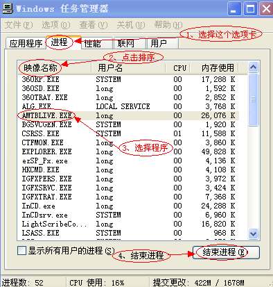 ⊙、若要強行關閉軟件,請同時按下CTRL、ALT、DELETE三個鍵,系統 將彈出一個窗口,並依圖示操作:
